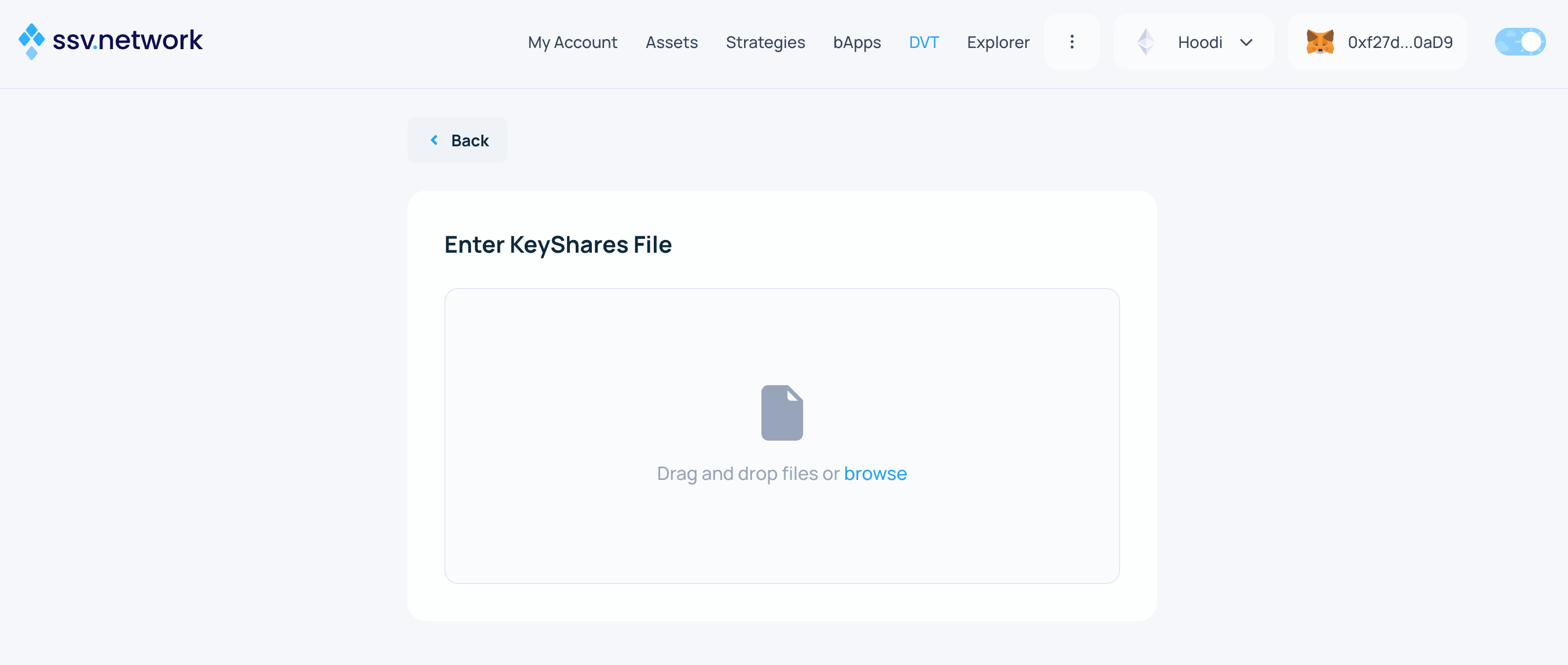 - Upload the generated KeyShares File